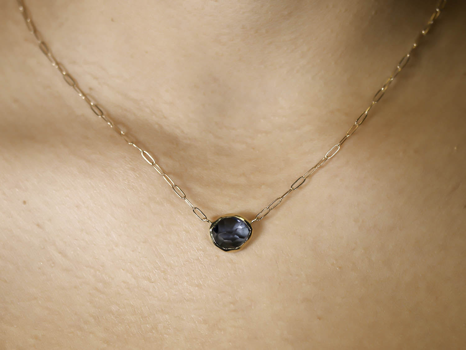 THE DETAILS: London Blue Topaz Pendant in 18K Yellow Gold with 14K Yellow Gold Paperclip-style Necklace
