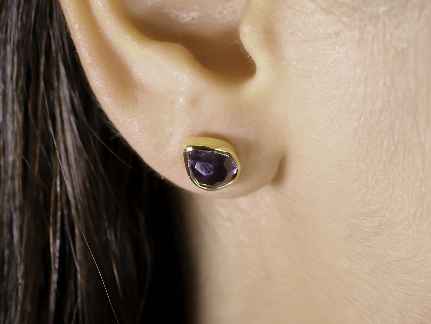 THE DETAILS: Bezel Set Amethyst Stud Earrings in 18K Yellow Gold