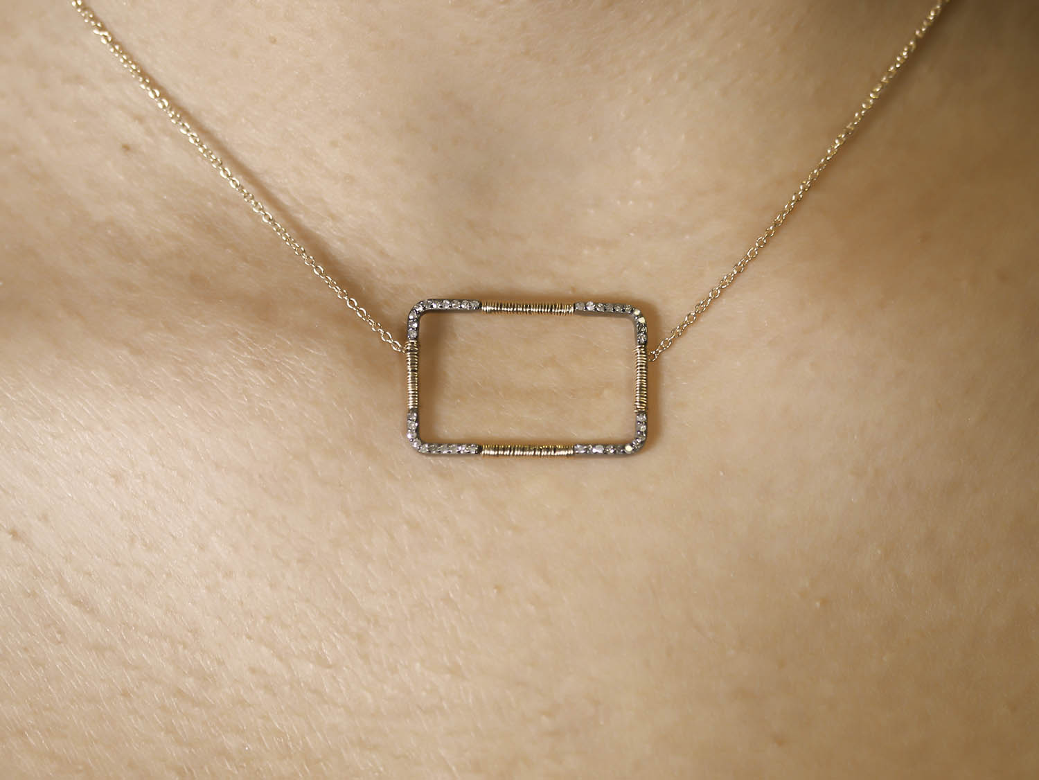 Pavé Rustic Gray Diamond Rectangle Pendant Necklace