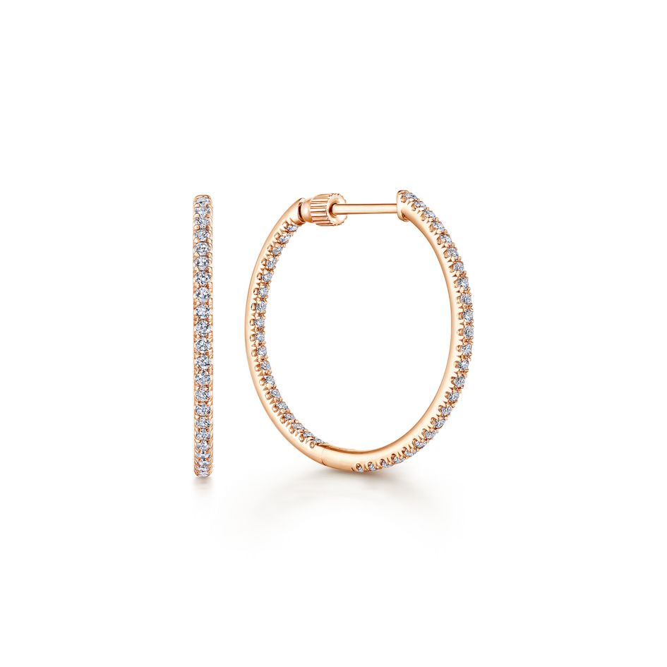 THE DETAILS: French Pavé Diamond "Inside-Out" Hoop Earrings in 14K Rose Gold