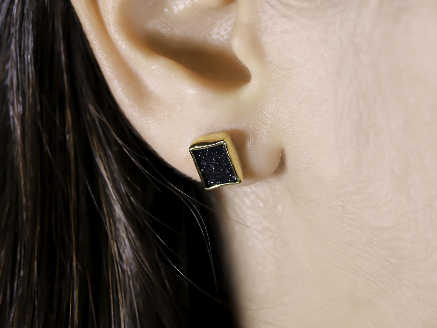 THE DETAILS: Black Onyx Druzy Stud Earrings in 18K Yellow Gold and Sterling Silver