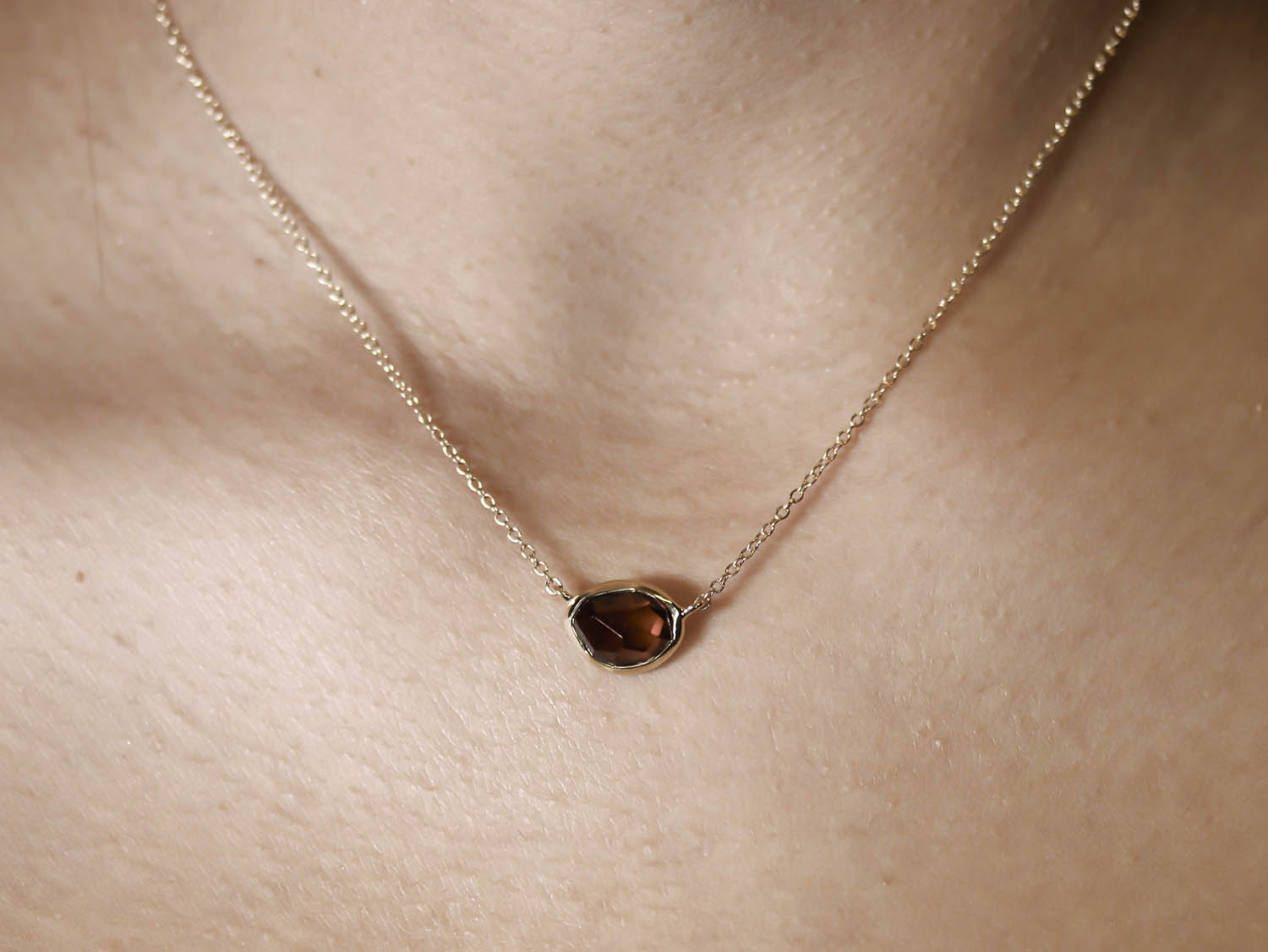 THE DETAILS: Almandite Garnet Pendant in 18K Yellow Gold with 14K Yellow Gold Rope Necklace