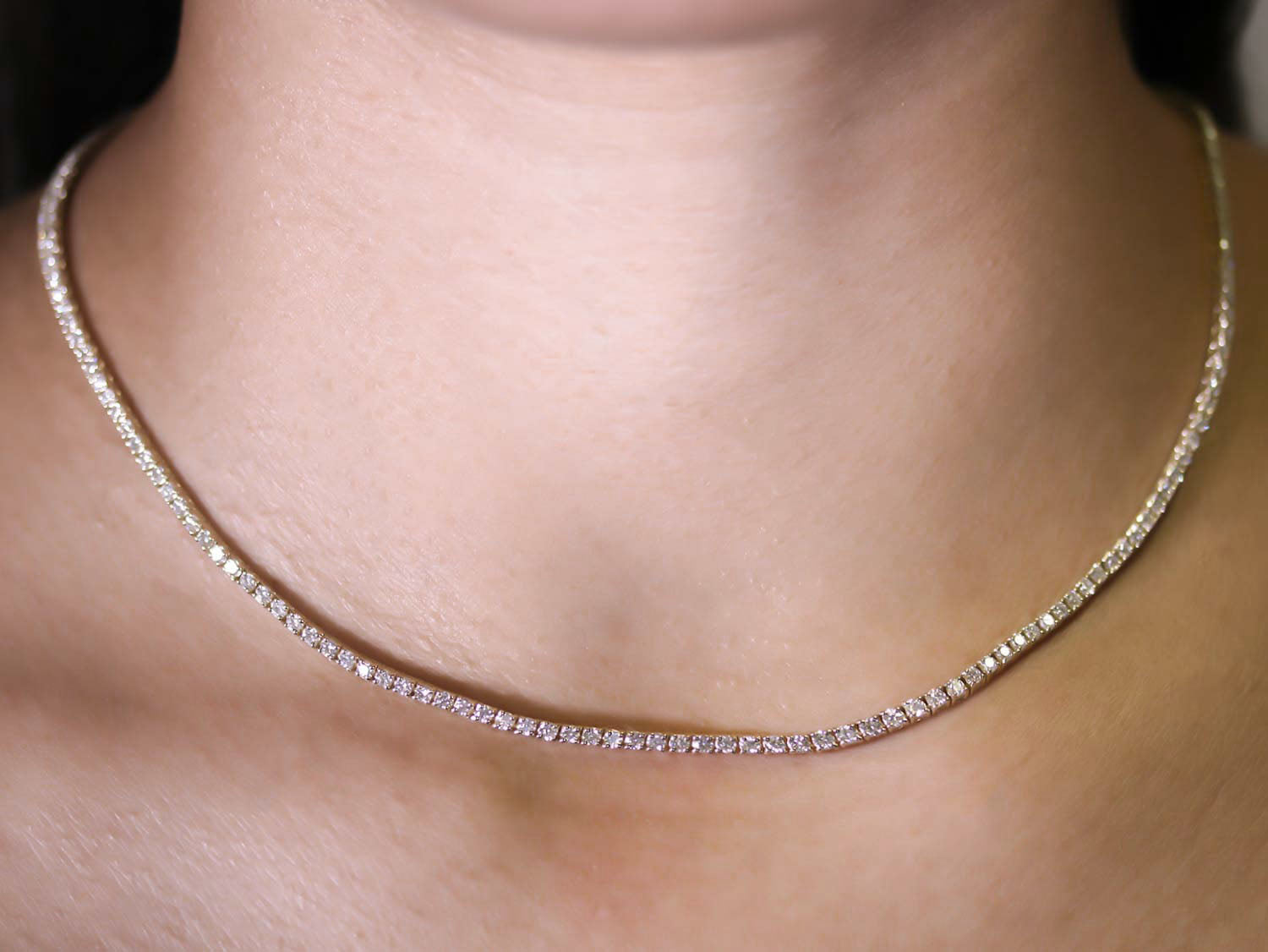 THE DETAILS: Brilliant Cut Diamond Tennis Necklace in 14K Yellow Gold