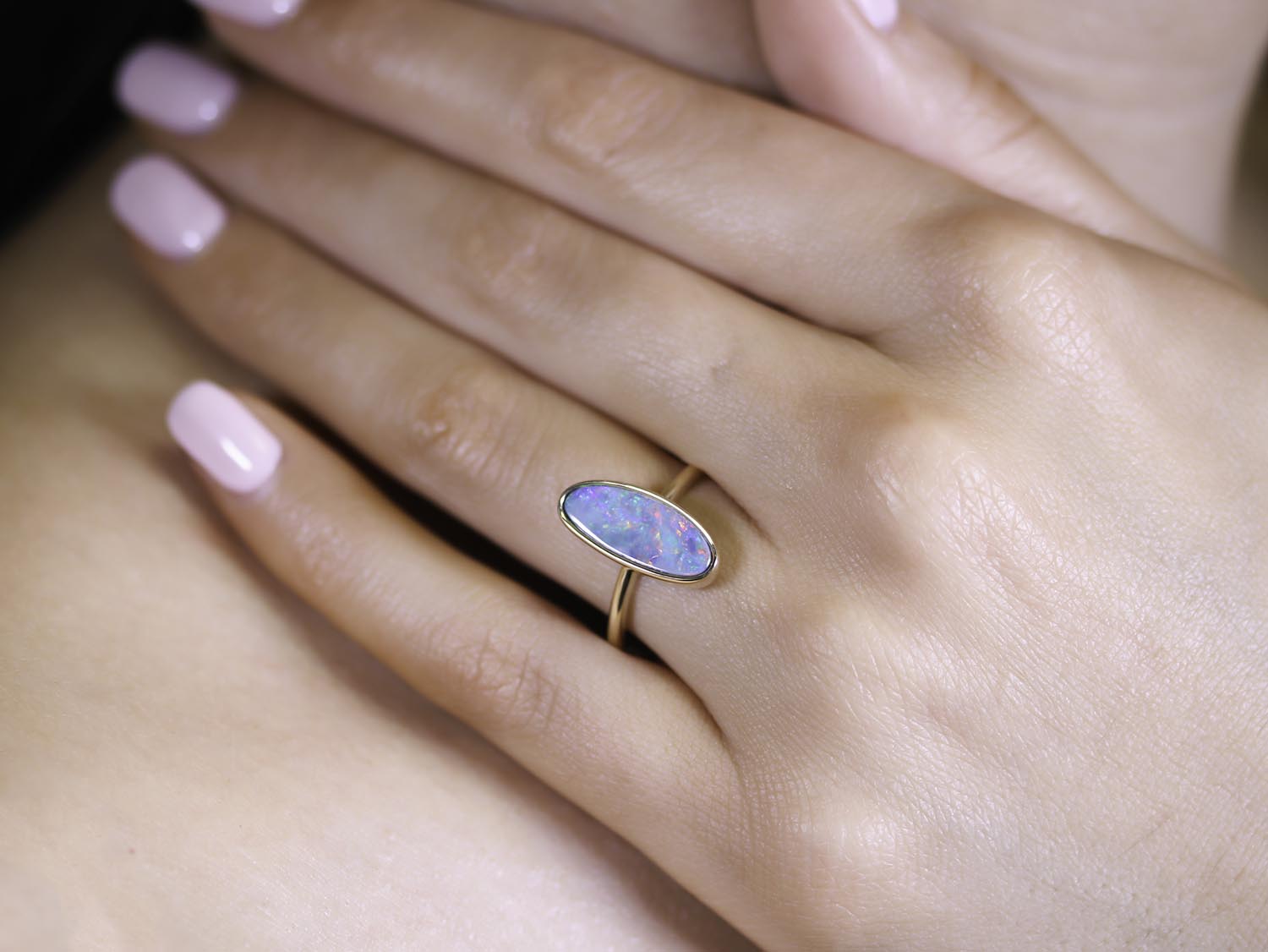 THE DETAILS: Australian Opal Doublet Ring in 14K Yellow Gold